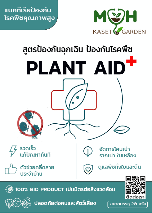 กระตุ้นภูมิคุ้มกันพืช: นอกจากจะเข้าทำลายเชื้อโรคโดยตรงแล้ว Plant AID ยังช่วยกระตุ้นระบบภูมิคุ้มกันของพืช (Induced Systemic Resistance – ISR) ทำให้พืชสร้างกลไกป้องกันตัวเองขึ้นมา สู้กับโรคได้ดีขึ้นในระยะยาว